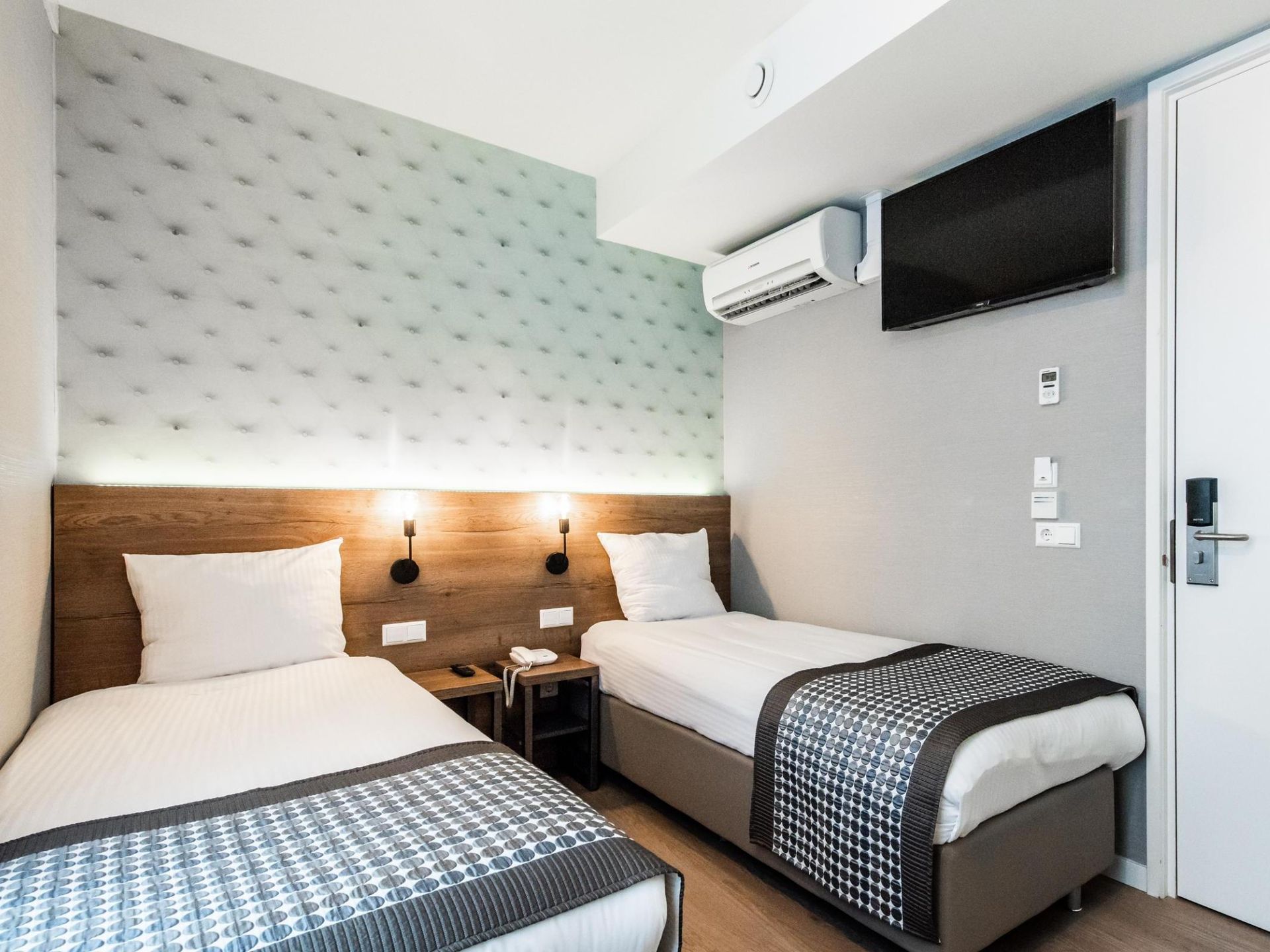 La habitación doble semi-suave es perfecta para 2 personas. Estas habitaciones tienen dos camas individuales. Por supuesto, tendrás exactamente lo que necesitas para una estancia cómoda en Ámsterdam.